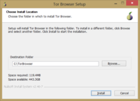 Внимание 1. Запомните директорию, куда вы собрались устанавливать TB (C:\TorBrowser или какая-то другая). В некоторых последующих пунктах мы будем прописывать строки в настрочных файлах и запускать TB, и там, где написано C:\TorBrowser, вы должны подставить путь до своей директории, куда ставили TB, если решили поменять её в этом пункте в процессе установки. Внимание 2. Ещё раз про русские буквы в имени директории установки. Не надо этого делать, в зависимости от ситуации могут возникнуть проблемы при настройке или работе Tor. В частности, см. шаг 7.