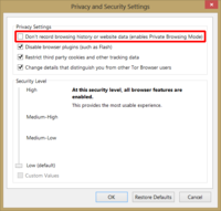 Внимание. Опыт показал, что текущее положение и перемещение бегунка влияют не только на внутренние настройки и поведение браузера, но и на настройки установленного в нём расширения NoScript. Например, вы делаете всё по этой инстукции, снимая и устанавливая те или иные галки в настройках TB и далее в NoScript. Затем решаете переместить бегунок в другое положение. Вот тут-то могут измениться настройки NoScript, а вы это не поймёте, пока не начнёте видеть изменения в поведении браузера и не пойдёте в NoScript смотреть, что же изменилось. Поэтому автор советует всем после передвижения бегунка снова пройтись по всем дальнейшим шагам инструкции после этого и убедиться, что ничего не изменилось, или что новые настройки вас устраивают. Более того, на этот бегунок достаточно просто кликнуть, не перемещая его, чтобы он применил какие-то свои настройки! Автор не призывает опасаться что-то здесь менять и вообще обходить это окно стороной, просто имейте в виду, что есть такая особенность.