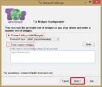 Если Tor Browser должен быть настроен на работу с мостами во время первичной установки
