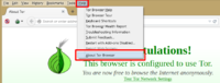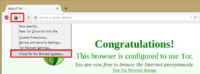Шаг 12. Заходим в меню TB. Эта кнопка с зелёной луковицей называется Tor Button, с её помощью можно управлять настройками TB. Когда TB считает, что его версия устарела и есть более новая, сбоку от луковицы будет мигать жёлтый сигнал.